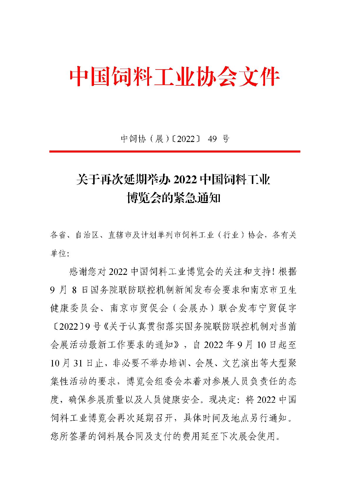 关于再次延期举办2022中国饲料工业博览会的紧急通知