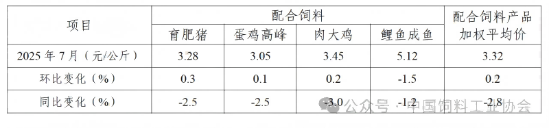 表2 2025年7月饲料企业配合饲料平均价格